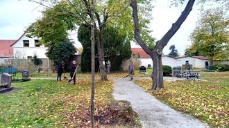 Ein herzliches Dankeschön möchte ich allen sagen, die uns am 16. November bei unserem diesjährigen Herbsteinsatz auf dem Friedhof geholfen haben. Mehr als 20 Männer, Frauen, Jugendliche und Kinder hatten sich eingefunden, um das Laub zu harken, Wildwuchs zu entfernen und historische Gräber zu pflegen. Da auch das Wetter mitspielte, konnten wir eine Menge schaffen. Dennoch trugen viele Bäume noch ihr grünes Kleid. Wir werden uns wohl daran gewöhnen müssen, dass auch Ende November immer noch sehr viel Laub auf dem Bäumen ist. Das kann dann erst im Dezember und Januar aufgenommen werden, abhängig von der Wetterlage. Eine große Hilfe beim Aufladen und bei der Entsorgung des Laubes war wieder der Landwirtschaftsbetrieb Sander (Gottenz). Das war alles gut organisiert und eingetaktet.