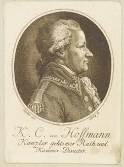 Erwies sich Hoffmann so durchaus als findiger Unternehmer auf seinem Gut und kluger Förderer in der Gemeinde, sah er sich als Kanzler der Universität nicht allein als deren wirtschaftlicher Verwalter. Auch wenn seine Kanzlerschaft lediglich vier Jahre betrug (1786-1790), hinterließ er doch deutliche Spuren, die bis in die Gegenwart ausstrahlen. Nicht ganz unschuldig wird wohl daran sein alter Studienkollege Karl Abraham von Zedlitz, der spätere preußische Justiz- und Kultusminister, gewesen sein. Kaum war Hoffmann vom preußischen König Friedrich Wilhelm II. 1786 zum Geheimrat und Kanzler berufen, wurde er wenige Wochen später in den Adelsstand erhoben und von von Zedlitz 1787 in sein Amt eingeführt. (Heute würde wohl jener rasante Aufstieg sicherlich gleich von den Medien hinterfragt werden….)