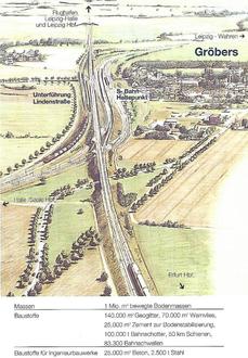 Nach dem 1990 für uns die Grenzen gefallen waren, zeichnete sich eine weitere Etappe ab. Im Jahr 1996 stellten die Projektmanager der Bahn im Gemeinderat Gröbers das Verkehrsprojekt Deutsche Einheit Nr. 8 (VDE 8) vor und erläuterten den ICE-Knoten Gröbers. Das VDE 8 sollte ein Teil der schnellen Verbindung von Berlin nach Verona werden. Der Knoten Gröbers war ein Knackpunkt, weil die Schnellfahrstrecke über den Altbergbau führt, eine besondere und sehr anspruchsvolle Herausforderung im Bahnbau. Die aufwendigen Bauarbeiten begannen im März 1997. Mit der Eröffnung des Tunnels im August 2003 war ein wesentlicher Teilabschnitt fertiggestellt.