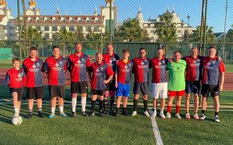 Die Alten Herren der SG Großkugel machten sich diesmal jedoch gemeinsam mit der A-Jugend des SV „Eintracht“ Gröbers auf den Weg in die Türkei, um sich auf die nächsten Herausforderungen des Fußballs vorzubereiten. Für beide Teams wurden passgenaue Trainingseinheiten zusammengestellt. Für die Alten Herren aus Großkugel bedeutete dies, dass täglich am frühen Morgen eine gemeinsame Laufeinheit zu absolvieren war. Nach dem Frühstück ging es dann auf´s Trainingsgelände, welches im Übrigen jedes Fußballherz höherschlagen ließ. Denn hier erwarteten uns Profibedingungen. Gemeinsam mit der A-Jugend aus Gröbers trainierten neben uns „Alten Herren“ keine geringen Teams wie z.B. die Frauen des FC Spartak Moskau, ein Team der 1. Liga Nordmazedoniens.