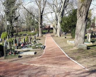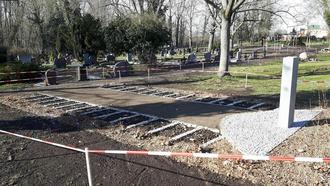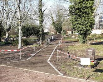 Neben dem Weg zum Kunstwerk „Wegzeichen“, der schon nutzbar ist, wurde auch der künftige Rasenweg fertiggestellt. Allerdings ist er noch abgesperrt – es müssen noch einige Wochen ins Land gehen, bis der Rasen gewachsen ist. Bitte beachten auch Sie bei einem Friedhofsbesuch die Absperrung, damit die Saat aufgeht...