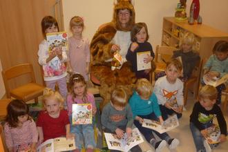 Unsere Lesepatin Ramona Burkhardt las den Kindern der Käfergruppe das Buch „Der kleine Maulwurf“ und der Bienchengruppe unserer Kita das Buch „Die Palastbären freuen sich auf Santa Claus“ vor. Dafür schlüpfte sie extra in ein Bärenkostüm. Lesepatin Nadine Löffler las bei den Zuckertüten „Meiner“ vor. Danach gab es eine kleine Apfelobstmahlzeit, passend zur Geschichte. Nach der kleinen Stärkung gab es noch ein Apfel- Mandala-Ausmalbild. Am Mittag kam Lesepate Ivan Engels zu den Hortkindern und stellte das Buch „Kalendergeschichten“ vor. Begeistert lauschten die Kindern den Erzählungen.