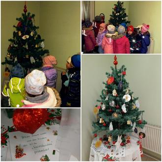 Am 04.12.24 machten sich die Kinder der Kita „Waldhäuschen" auf den Weg in den Heimatverein Gröden e.V., um den Weihnachtsbaum schön zu dekorieren. Etwa 25 Bienchen-, Spatzen- und Käferkinder hängten ihre selbstgebastelte Weihnachtsbaumdeko an und sangen noch ein Liedchen, zur Belohnung gab es ein leckeres Plätzchen.