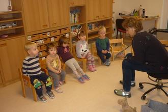 Jede Gruppe hatte sich einen Vorleser eingeladen. Entsprechend des Alters der Kinder brachten sie ein Buch mit.