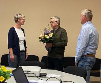Über 19 Jahre, von 2004-2023 war Herr Kniese im Schiedsamt an der Seite von Frau Schmidt als Streitschlichter tätig. Amtsdirektorin Kathleen Wilken und der Vorsitzende des Amtsausschusses Renè Bodack überreichten mit einem herzlichen „Dankeschön“ für das langjährige ehrenamtliche Engagement im Interesse der Allgemeinheit nun offiziell auch den Blumenstrauß an Herrn Kniese.