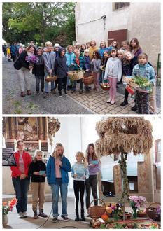 Ihre Dankbarkeit für die Gaben der Natur brachten die SchülerInnen beim Erntedank Gottesdienst am 05. Oktober in der Großthiemiger Kirche zum Ausdruck. Der Altar wurde herbstlich schön geschmückt und mitgebrachte Früchte, Obst, Gemüse, Brot und Blumen dekorativ dargeboten. Religionslehrerin Silvie Grosser und Gemeindepädagogin Kathleen Gude gestalteten gemeinsam mit den Kindern ein zauberhaftes Programm mit Liedern, Gebeten und Wünschen für eine gute Ernte überall auf der Welt. In der Darbietung einer Kurzgeschichte über „Den Wert des Brotes“ vermittelten die Schüler eindrucksvoll, welchen Einfluss der Wohlstand auf unsere Achtung der einfachen Gaben der Natur hat. Zum Abschluss des Gottesdienstes teilten sich alle als Zeichen ihrer Dankbarkeit und der Wertschätzung ihrer Gemeinschaft Brot und Wein(-trauben).