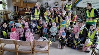 Ein Ausflug der besonderen Art führte uns Anfang Oktober in die wunderschön geschmückte und dekorierte Kirche in Merzdorf. Die Einwohner hatten reichlich Obst, Gemüse und andere Gaben abgegeben, um für die gute Ernte im Jahr zu danken. Alle Kinder und Erzieher/innen staunten nicht schlecht über schön angerichteten Körbe und Kränze, aber besonders voll war der große Erntegabenbaum mit allen erdenklichen Früchten.