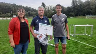 Am 3.10. fand im Rahmen der zweiten Pokalrunde zwischen dem FC Schradenland und dem TSG Rot-Weiss 90 Kostebrau auf dem Sportgelände in Gröden die Ehrung des Ehrenamtspreisträgers 2023 Gunder Thielemann statt. Die Ehrenamtsbeauftrage des Fußballkreises Südbrandenburg Kristin Preuss hatte nicht nur eine Urkunde mit im Gepäck, sondern auch noch zwei Alu-Minitore für unseren Nachwuchs. Frau Preuß und der Vorsitzende des FC Schradenlandes Marco Thielemann bedankten sich vor knapp 100 Zuschauern bei Gunder Thielemann für die herausragenden Leistungen in verschiedenen Funktionen rund um den Fußball über mehrere Jahrzehnte. Zudem ist Gunder Thielemann vom Landesverband für den „Club 100“ des Deutschen Fußballbundes vorgeschlagen und in den Club berufen worden.