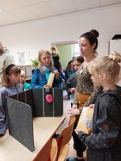 Zweimal im Jahr öffnet die Evangelische Schraden Grundschule in Großthiemig für interessierte Eltern, Großeltern und Kinder ihre Pforten. Am 14.10.2023 war es wieder soweit, in der Zeit von 10 bis 13 Uhr konnten sich Besucher ein Bild über das Lernen in dieser ganz besonderen Schule machen. Schon in den Morgenstunden liefen die Vorbereitungen durch Lehrer, Erzieher und Eltern auf Hochtouren. Es wurden Tische und Stühle gerückt, Bastelstraßen aufgebaut, Gemüse geschnippelt, Schnittchen geschmiert, Kuchen gebacken und vieles mehr. Denn eines ist klar: jeder Besucher soll sich auf Anhieb wohl fühlen. Wie jedes Mal führten natürlich die Schüler die interessierten Gäste durch die Räume und berichteten von ihrer Schule. Ausführlich schilderten sie den Lernalltag, gingen auf Fragen ein, erklärten das selbstständige Arbeiten mit ihren Wochenplänen und erzählten von den zu erledigenden „Diensten“, wie zum Beispiel dem Blumengießen und Tafel reinigen. Außerdem wurde ein kleines Monsterchen vorgestellt, das „WIR“, welches an der Grundschule in Großthiemig eine zentrale Rolle spielt. Es wächst und ist fröhlich, wenn die Schüler einander helfen, miteinander reden und Rücksicht aufeinander nehmen. Streitereien hingegen lassen das „Wir“ klein und schwach werden.