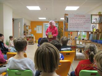 Am 15.11.2024 wird wie jedes Jahr in der gesamten Einrichtung vorgelesen. In der Kinderkrippe las Lesepatin Ramona Burkhardt für die Jüngsten die Geschichte vom „Dicken fetten Pfannkuchen“. In der Bienchengruppe, bei den 3-5 Jährigen, stellte Marlen Rudolf das Buch „Wo ist Anouk wohl? Hast du eine Idee?“ vor. Bei den Größten aus dem Kindergarten, der Zuckertütengruppe, las Nadine Löffler vor. Dieses Mal brachte sie das Buch vom „Igel der wissen wollte wie viele Stacheln er hatte“ mit. Simone Engels besuchte dieses Jahr die Hortkinder und gab tolle Einblicke in viele verschiedene Geschichten des Buches „Kindergeschichten“. Unter anderem vom „Jörg der Zahnweh hatte“ und vom „Jochen der nicht aufräumen wollte“. Wie jedes Jahr war es ein schöner Tag mit viel Freude für alle Kinder.