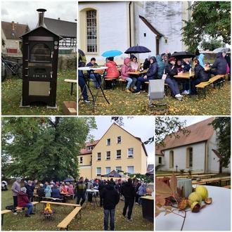 Am Sonntag, dem 5. Oktober, veranstaltete die Kirchengemeinde Gröden gemeinsam mit dem Heimatverein bereits zum dritten Mal das Erntedankfest auf dem Kirchhof. Zahlreiche Gäste nahmen am Gottesdienst teil und nutzen anschließend die Gelegenheit, gemütlich beisammenzusitzen. Auch die Heimatstube war wieder gut besucht. Trotz wechselhaftem Wetter genossen viele Besucher den geselligen Nachmittag. Besonders beliebt waren der frisch im mobilen Backofen zubereitete Flammkuchen sowie der Federweißer.