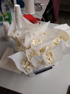 Nachdem die Kinder am Einlass eine Marke und einen Stempel auf die Hand erhielten, nahmen sie auf ihren Kissen Platz. Ganz schnell war unser kleines, nach Popcorn duftendes Kino ausverkauft.
