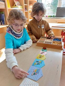 Die Montessori Pädagogik bildet die Grundlage der schulischen Arbeit. Wie toll es sich mit qualitativem Sinnesmaterial nach Maria Montessori und anderen reformierten Persönlichkeiten der Bildung lernen lässt, haben die jüngsten Schulmitglieder allen Anwesenden berichtet und vorgeführt. Natürlich durften neugierige Besucher das auch selbst einmal testen oder die Bücher in der Schulbibliothek durchstöbern. Die Schüler ab Klasse 4 führten die Gäste durch die Räume, schilderten ausführlich den Lernalltag, den Wert des gemeinsamen Lernens und der Freude an der Freiarbeit. Auch Einblicke in das neuste Projekt der Schule, der „Gemüse Ackerdemie“, konnten gewonnen werden. Als Bestandteil des Unterrichtsfaches „Gesunde Ernährung“ lernen die Kinder hier eigens Beete anzulegen, Saat auszubringen, zu pflegen und zu ernten. Begleitet werden sie dabei vom Schuleigenen Acker Coach. Passend dazu wurden die Besucher nicht nur mit Kaffee und Kuchen, sondern auch mit selbstgebackenem Brot und zuckerfreien Müsliriegeln verköstigt.