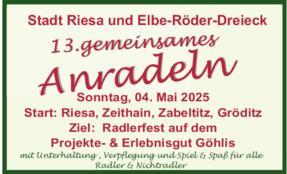 Auch in diesem Jahr heißt es wieder am ersten Sonntag im Mai: „Auf die Drahtesel!“. – Die Region Elbe-Röder-Dreieck und die Stadt Riesa laden am 4. Mai 2025 zur offiziellen Eröffnung der Fahrradsaison ein. Auf den Radrouten entlang von Elbe, Röder, Gohrischheide und Floßkanal werden auf vier verschiedenen Touren wieder viele Interessierte und Radfahrbegeisterte unterwegs sein.
