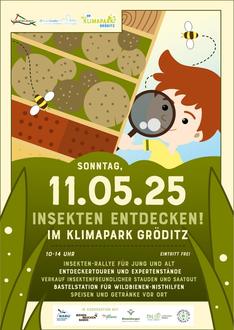 Um die Blauschwarze Holzbiene und viele weitere Insektenarten soll es am Sonntag, den 11. Mai 2025 von 10 bis 14 Uhr im Klimapark Gröditz gehen. Nach dem großen Zuspruch im Vorjahr laden die Stadt Gröditz und das Elbe-Röder-Dreieck zum zweiten Mal zum Insekten entdecken! ein. Gemeinsam mit Insektenkundlern und Experten für deren Lebensräume gibt es eine Insekten-Rallye für Jung bis Alt zu den vielfältigen Stationen des Klimaparks und Entdeckertouren quer über das Gelände.