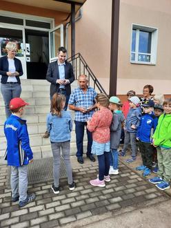 Am 1. Juni 2024 wird im Merzdorfer Freibad die Badesaison eröffnet. In diesem Jahr können sich die Schülerinnen und Schüler der Hans-Nadler-Grundschule in Gröden besonders darüber freuen. Denn alle 109 Grundschüler egal ob Merzdorfer oder Grödener erhalten erstmalig eine kostenfreie Dauerkarte für das Freibad. Bisher unterstützte die Gemeinde Gröden die Nachbargemeinde Merzdorf mit einem direkten Zuschuss in Höhe von jährlich 2.000 Euro für die Unterhaltung des Freibades. In diesem Jahr entschied sich die Grödener Gemeindevertretung als Schulträger, erstmalig die Freikarten direkt für die Schüler zu erwerben. Damit wird der Nachbargemeinde weiterhin finanziell geholfen und die Kinder der Grundschule können obendrein die Badesaison kostenfrei genießen. In gleicher Weise verfährt auch die Hirschfelder Grundschule, die bereits in den letzten Jahren ihren Schülern Freikarten für das benachbarte Freibad in Großthiemig sponserte. Übergeben wurden die Freikarten an die Schülerinnen und Schüler vom Grödener und Merzdorfer Bürgermeister Dr. Sebastian Rick und Andreas Fieback sowie der Amtsdirektorin Kathleen Wilken. Als dabei die Kinder gefragt wurden, ob sie denn gern das Freibad besuchen würden, antworteten alle Schülerinnen und Schüler mit einem lautem „Ja“.