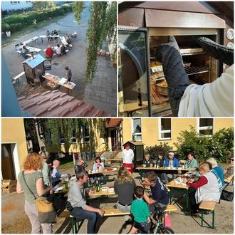 In lockerer Runde, mit Bänken und Tischen im Freien, wurde viel gelacht, geplaudert und einfach mal die Gemeinschaft genossen. Ein besonderes Highlight war der erstmalige Einsatz des mobilen Backofens, der den vier Amtsgemeinden des Amt Schradenland gehört.