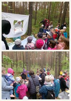 Am Nachmittag des 16.05.2023 wurden alle Kinder mit ihren Eltern zu einer Mutter- und Vatertags- Wanderung eingeladen. Nach einer Begrüßung in der Kita, ging die Wanderung mit Hensel und Gretel in den Merzdorfer Märchenwald. Am Eingang zu dem Märchenwald erwartete uns das Rotkäppchen. Rotkäppchen erzählte uns, dass wir immer schön auf dem Weg bleiben sollen. Wir orientierten uns an Pfeilen, Sägespänen und bunten Bändern an den Bäumen. So kamen wir zu Aschenputtel. Bei Aschenputtel mussten Schuhe sortiert und die Tanzschuhe für Aschenputtel herausgesucht werden. Nachdem Aschenputtel ihre Tanzschuhe hatte gab es einen kleinen Walzer im Wald. Als nächstes fanden wir den Froschkönig. Beim Froschkönig mussten wir die Kugel in den Brunnen werfen, um dann den weiteren Weg zu erfahren. Entlang auf der Himmelsleiter sind wir bei Frau Holle angekommen. Frau Holle war fleißig beim Betten schütteln und es sind kleine Gummibären raus gefallen. Jedes Kind konnte sich eine kleine Tüte aufheben. Nach kurzer Stärkung ging es weiter. Auf unserem Hasenberg erwartete uns die Hexe. Schnell nahm die Hexe den Hensel und die Gretel in ihre Höhle gefangen. Hensel und Gretel mussten dort ausharren bis alle Kinder das Lied von Hensel und Gretel zusammen gesungen hatten. Als Belohnung gab es eine Schatzkiste mit Brezeln und Hensel und Gretel waren wieder frei. Danach ging es zurück in die Kita. In der Kita angekommen, wurde der Spielplatz erobert. Max und Moritz grillten für das gemeinsame Abendessen leckere Bratwürste. Nach diesem gemütlichen Ausklang fielen wir müde ins Bett. Es war für alle ein wunderschöner Nachmittag.