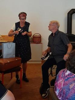 Danach wurden wir von Erna (Ingrid Roch) überrascht. Sie zeichnete, mit Witz und spitzer Zunge, besonders fleißige Mitglieder aus. Denn der Verein lebt von seinen Mitgliedern und deren Bereitschaft etwas für ihn zu tun.