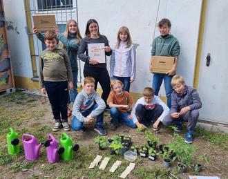 Bereits in die zweite Acker-Saison sind die Schüler der Evangelischen Schraden Grundschule im Rahmen des Unterrichtsfaches „Gesunde Schule“ in diesem Jahr mit Erzieherin Sahra Anger und Ackercoach Pauline von der „Gemüse Ackerdemie“ gestartet. Im April fand der erste Pflanzworkshop mit den Kindern der 4. Klasse statt und es wurden Kartoffeln gesteckt, Möhren wie Radieschen gesät und vieles mehr in den Boden gesät, gelegt und gesteckt. In den darauffolgenden Wochen hieß es für die Kinder dann Beete wässern, Saatreihen jäten und die zarten Gemüsepflänzchen vor tierischen Besuchern schützen. Die wöchentlich bereitgestellten Ackerinfos auf der Lernplattform der „Gemüse Ackerdemie“ versorgen sie hierbei mit nützlichen Tipps.