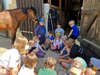 Die Lerngruppe der Klasse 1 & 2 „Marias Schützlinge“ ist am 28. April in ihre erstes großes Klassenfahrtabenteuer gestartet. Die Reise ging zum Kindererholungszentrum Kiez Sebnitz. Am ersten Tag haben die Kinder das Feriendomizil mit jeder Menge Spaß und Spiel ausgiebig erkundet. An Tag 2 stand der erste Höhepunkt der Fahrt an, der Ausflug auf den nahegelegenen Bauernhof. Hier gab es so viel zu entdecken und erleben. Nach einer Führung durch den Hof wurden die Pferde besucht und wer wollte, durfte sogar reiten. Und auch die zwei Hofhunde kamen auf ihre Kosten. Bei einem Spaziergang waren sie voller Freude und Aufregung an der nahegelegenen Wasserstelle nicht mehr zu halten, ganz zur Freude der Kinder. Den krönenden Abschluss fand der Tag im kiez-eigenen Kino mit Popcorn. Am nächsten Tag ging es mit dem Pickup in den Urzeitpark. Es gab viel Interessantes zu erfahren über die urzeitlichen Lebewesen und ganz viel Spaß beim Graben nach Fossilien. Nach einer leckeren Brotzeit ging es dann zurück in die Schule, mit super schönen Erlebnissen und ganz vielen Geschichten im Gepäck.