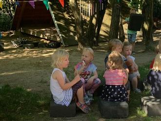 Kurz vor den Ferien ist es bei unseren Schulanfängern soweit, sie werden von allen Gruppen verabschiedet. Mit Blümchen und kleinen Geschenken machten auch dieses Jahr alle Kinder der anderen Gruppen den Schulanfängern den Abschied leichter. Mitten in diesem bunten Treiben brachte uns unsere Bürgermeisterin Frau Haase eine eisige Überraschung. Jedes Kind bekam ein leckeres Eis. Wir bedanken uns bei Frau Haase für die Abkühlung und für diese schöne langjährige Tradition.