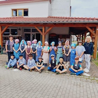 Dann sind wir nach oben gegangen, dort haben wir gefrühstückt. Nach dem Essen durfte jeder an einer alten Schreibmaschine seinen Namen schreiben. Die Jungen durften auch mal das Nähen probieren. Als wir alles erkundet hatten, sagte Frau Lösche, so wir spielen alte Schule und erklärte uns die Regeln.
