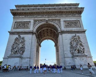 Es war der 28. Juli, kurz nach 1 Uhr, als der Bus aus Hirschfeld in Richtung Paris startete. Große Erwartungen, Spannung und Aufregung waren bei den 32 mitreisenden Spielleuten zu spüren. Ohne Staus und Grenzkontrollen kamen wir um 16.30 Uhr wohlbehalten in unserer Unterkunft im Vorort Cergy an. In unseren Zwei- und Dreibettzimmern richteten wir uns ein und verbrachten den ersten Abend in Paris. Am Montag hieß es dann: Stadt erkunden und den Menschen mit Musik eine Freude machen. Ca. 50 Minuten Fahrt mit dem Regionalexpress und wir befanden uns genau unter dem Triumphbogen. Nach dem Weg aus dem unterirdischen Bahnhof, durch dutzende Gänge und Rolltreppen, wurden wir durch den Anblick des beeindruckenden Bauwerks aus dem beginnenden 19. Jahrhundert belohnt. Nicht nur Fotos wollten wir machen, sondern auch spielen. Die Polizei freute sich, dass wir vorher fragten, und signalisierte mit Daumen hoch und „very good“, dass wir unser kleines Konzert genau vor dem Triumphbogen beginnen können. Kaum waren die ersten Takte verklungen, sammelte sich eine große Menschenmenge aus Touristen, Sport-Fans und Pariser Bürgern um uns, filmte und klatschte. Einer Dame der Museumsverwaltung des Triumphbogens passte das gar nicht. Mit Händen, Füßen und nicht zuletzt einem ziemlichen Geschrei versuchte sie unsere Stabführerin Hanna Stange zum Abriss des Titels zu bewegen. Buh-Rufe aus der Menge waren ihr Dank. Nach einem weiteren missglückten Anlauf entschlossen wir uns, durch die Straßen Richtung Eiffelturm zu marschieren. Das funktionierte ohne Probleme - die vielen Menschen in den Cafés und auf den Gehwegen winkten und klatschten. Auch die überall postierten Polizisten freuten sich über unsere kleine Straßenparade. Die olympische Atmosphäre war mit Händen zu greifen. Unterwegs trafen wir eine Reporterin des Fernsehsenders WELT, die sich für unsere Auftritte interessierte. Sie filmte uns beim Spielen und interviewte unseren Vereinschef Günther Müller. Anschließend unternahmen wir eine Flussfahrt auf der Seine - und schon war es Abend. Mit vielen Eindrücken ging es wieder zur Unterkunft.