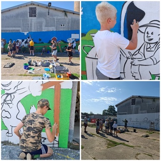 Unter Anleitung von Christian Schenk wurden erste Techniken des Sprayens erlernt und gemeinsam ein großes Kunstwerk erschaffen – ein echtes Highlight für alle Teilnehmenden.
