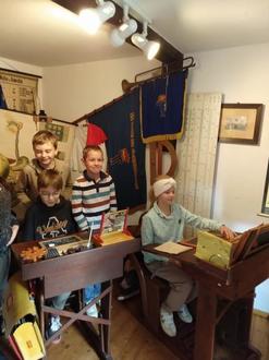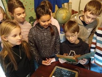 Im Sachkundeunterricht der 4. Klasse stand das Thema „Schule früher“ und so war es nur folgerichtig dazu ins Museum zu gehen. Hier gibt es eine kleine Schulausstellung mit vielen historischen Dokumenten. Die Klasse 4c wurde zunächst über allgemeine Gepflogenheiten der früheren Schulausbildung informiert. Danach ging eine Gruppe in die Schulausstellung, die andere Gruppe durfte mit Feder und Tinte ihre Kenntnisse von Baulichkeiten unserer Stadt aufschreiben. Keine leichte Aufgabe, wie die mit Tinte beschmierten Hände und verklecksten Aufzeichnungen zeugten. In der Schulstube gab es noch weitere Informationen über Schulgeschichte und es konnten Sachzeugnisse gezeigt werden. Nach gegebener Zeit wechselten die Gruppen. Obwohl zwischendurch mal ein sehr strenger Ton angeschlagen wurde (der Schulhistorie geschuldet) gab diese „Unterrichtsstunde“ viel Spaß und machte allen Beteiligten viel Freude.