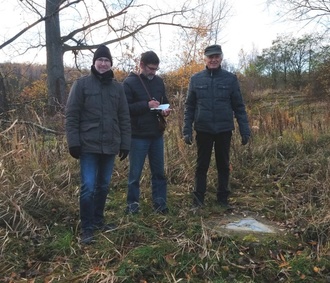 Am 23.11.2024 trafen sich die Vertreter (Andreas Hausschild HV Lucka (Foto r.)- Thüringen, Henri Brumme HV Staschwitz/OBM Langendorf (Foto l.) - Sachsen Anhalt, Kathrin Meyer in Vertretung von Roland Meyer und Dietmar Schäfer (Foto m.) - NHV Groitzsch - Sachsen) am Standtort des Dreiherrensteins bei Maltitz - Dreiländereck Freistaat Thühringen, Freistaat Sachsen und Sachsen Anhalt.