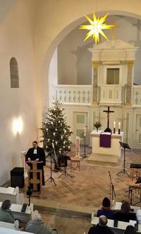 Nach erfolgreicher Beendigung der Innensanierungsarbeiten der Kirche Pödelwitz im letzten Sommer, leuchtet seit dem 3. Adventssonntag im letzten Jahr ein neuer, etwa 1,30 Meter großer Herrnhuter Adventsstern über dem Altarraum. Möglich machte dies eine großzügige Spende von Frau Marlene Domke, welche sich in den letzten Jahren bereits mehrfach für unsere Gotteshäuser engagierte. Zur Premiere war Frau Domke auch anwesend und freute sich mit den Gottesdienstteilnehmern über den Anblick. „Jeder positive Gedanke ist wie ein leuchtender Stern in der Dunkelheit“, so das Motto der Wahlgroitzscherin. Für die Spende sind wir Frau Domke sehr dankbar und wünschen ihr für die Zukunft alles Gute, vor allem viel Gesundheit, so der Vorsitzende des Kirchenvorstandes, Kai Rausch.