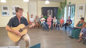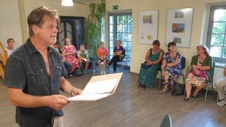Am 8.9.2023 wurde für dieses Jahr eine zweite Ausstellung in der Stadtmühle durch den Verein eröffnet. Die Vision: „In Groitzsch muss man als Künstler ausgestellt haben“, beginnt Wirklichkeit zu werden. Dabei ist der Chemnitzer Künstler Robert Kluge für Groitzsch kein Unbekannter, stellte er doch vor ein paar Jahren schon einmal im Museum aus. Dabei sind nicht nur Grafiken sein Markenzeichen, denn nach kurzer Eröffnungsrede vom Vorsitzenden des Vereins zeigte Robert Kluge sein musikalisches und rhetorisches Können mit auf Piano und mit Gitarre vorgetragenen Liedern und Gedichten. So hat wohl das Groitzscher Publikum noch keine Vernissage erlebt. Nicht nur Herr Kluge, sondern auch seine Frau war mit im Programm eingebunden. Nach dem akustischen Leckerbissen folgte der optische. Beim Rundgang zu den Grafiken, die auch Groitzscher Motive beinhalten und kombiniert mit Gedichten sind, wurden diese vom Künstler erläutert.