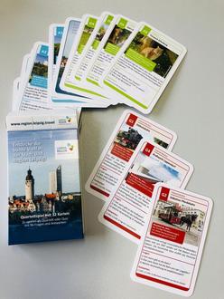 Erspielen Sie sich die Highlights der Umgebung mit dem Quartett-Kartenspiel „Die bunte Vielfalt der Stadt und Region Leipzig“: 32 Ausflugstipps präsentieren sich, verraten spannende Infos und sorgen für jede Menge Kurzweil und Ratespaß. Testen Sie Ihr Wissen über beeindruckende Burgen und Schlösser, bekannte Schiffe auf den Gewässern des Leipziger Neuseenlandes, außergewöhnliche Theaterbühnen und erlebbare Spuren der Industriekultur!
