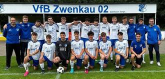 Leider hat unsere Sektion nur eine Hand voll eigener A-Jugendspieler, da es dem TUS Pegau und dem VfB Zwenkau ähnlich geht, spielen die 17-, 18-, und 19jährigen in dieser Saison in einer Spielgemeinschaft Zwenkau/Groitzsch/Pegau unter der Federführung vom VfB Zwenkau. An dieser Stelle vielen Dank an die Vereine der Nachbarstädte und deren Jugendleiter, dass diese erfolgreiche Partnerschaft diese Saison fortgesetzt werden kann. Trainer sind Sascha aus Zwenkau und Steffen vom Tus Pegau. Die Mannschaft tritt wie letzte Saison in der Landesklasse Nord an. Diese Liga ist schon anspruchsvoll, Gegner sind zum Beispiel die Mannschaften aus Torgau, Eilenburg und größere Leipziger Vereine. Unsere Jugendlichen sind geübt in Technik und Taktik, haben eine sehr gute Kondition und eine gute Grundschnelligkeit. Mannschaftskapitän ist unser Groitzscher Talent Jan, ein echter Vollblutfußballer. Folgend seht Ihr ein aktuelles Mannschaftsbild.