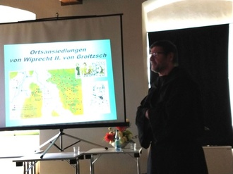 Am 26.10 2024 weilten Roland Meyer, Andreas Große und Dietmar Schäfer vom Verein und Kathrin Meyer auf Einladung in Ponitz zu einer interdisziplinären Tagung (25./26.102024) zu „Dorf und ländliche Siedlung des Mittelalters zwischen Saale und Zwickauer Mulde“. Wir präsentierten unsere Stadt und den Verein mit einem Vortrag zu „Ortsansiedlungen von Wiprecht II. von Groitzsch“. Dem Thema entsprechen trat Herr Schäfer als Bruder Dietmar im Gewande der Benediktinermönche des Pegauer Klosters auf. Ihm gelang in seinem Referat Historie und unterhaltente Episoden zu verknüpfen und trug so zur erfrischenden Unterhaltung bei, was dann auch durch Dr. Hans-Jürgen Beier in seiner Zusammenfassung der beiden Tagungstage ausdrücklich hervorgehoben wurde.