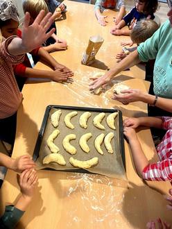 Endlich war es endlich soweit: Unser alljährliches Martinsfest - gemeinsam mit den Christenlehrekindern, unserer Kirchgemeinde und der großartigen Unterstützung unseres Fördervereins stand bevor. Die Vorbereitungen liefen die ganze Woche auf Hochtouren. Mit Begeisterung haben die Kinder bunte Laternen gebastelt, die Martinslieder geübt und die Geschichte des heiligen Martin gehört. Als krönende Abschluss der Vorbereitungen haben die Kinder voller Freude frische Martinshörnchen gebacken. Dann konnte der stimmungsvolle Abend im Sinne des Heiligen Martins voller Lichter, Lieder und leckerer Köstlichkeiten, welche wir natürlich gern miteinander teilen, beginnen!