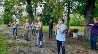 Im Groitzscher Sportverein gibt es in der Ju-Jutsu-Sektion auch eine Qigong-Gruppe. Unsere Frauen waren sehr an einem Schnupperkurs interessiert. Auf dem Gelände der Wiprechtsburg nach einem erfrischenden Regenguss und bei schönstem Vogelgezwitscher konnten wir unter Anleitung des Qigong-Übungsleiters die entspannende Wirkung spüren.