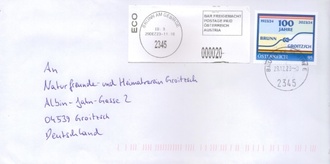 Uns erreichten Weihnachts- und Neujahrsgrüße aus Brunn am Gebirge und das hatte einen zweifachen Grund. Wir pflegen seit 2018 aus einem historischen Sachverhalt zwischen unseren beiden Städten freundschaftliche Beziehungen mit Dr. Robert Krickl und Gerli Mailling aus Brunn am Gebirge in Österreich. Mit diesen Grüßen erinnerte Herr Krickl an die 100jährige Wiederkehr, dass man in Brunn für notleidende Kinder Spenden sammelte und diese dann nach Groitzsch schickte. Im Gegenzug konnten Groitzscher Kinder für einen längeren Aufenthalt nach Brunn reisen, um dort von Brunner Familien versorgt und betreut zu werden. (Wir werden in einer der nächsten Groitzscher Heimatblätter ausführlich darüber berichten). Speziell zu diesen Jubiläum wurde auch eine Briefmarke herausgebracht.
