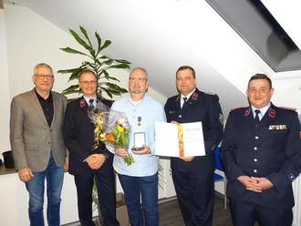 Eine besondere Auszeichnung erhielt Ehrenmitglied und stellvertretender Bürgermeister a.D. Andreas Zielke für sein Engagement für die Feuerwehr der Stadt Groitzsch. Aus den Händen von David Zühlke, Vorsitzender des Kreisfeuerwehrverbandes Landkreis Leipzig und Vizepräsident des Landesfeuerwehrverbandes, erhielt er die Deutsche Feuerwehr-Ehrenmedaille. Dies ist die höchste Auszeichnung, die ein Nichtfeuerwehrmann in Deutschland erhalten kann.