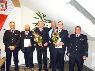 Marcus Schellbach und Matthias Hein wurden vom Hauptfeuerwehrmann zum Löschmeister befördert.