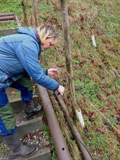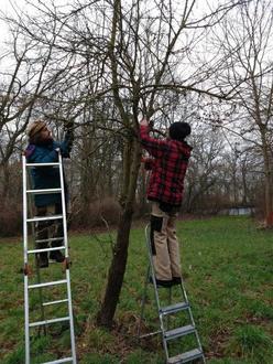 Das Wetter war ja nicht gerade einladend um am 25.2. mit einer Aktion (Baum- und Rebschnitt) beim Projekt „Wiprechts Garten - Gärtnern wie im 12. Jahrhundert“ am Burgberg zu beginnen. Das hielt uns aber auch nicht davon ab, entsprechet tätig zu werden. Die Rebstöcke am Weinberg waren für den Schnitt nicht das Problem, werden diese doch jährlich schon immer durch die Weinfreunde des Bürgervereins bearbeitet. Anders dagegen der Zustand der Obstbäume. So hatten wir (NABU, Naturfreunde- und Heimatverein) alle Hände voll zu tun.