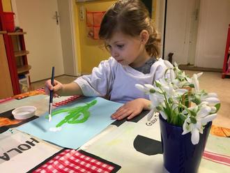 Die kleinen Wirbelwinde malen einen der ersten Frühjahrsblüher - das Schneeglöckchen. Sie erfahren, dass der Winter mit dem Fasching verabschiedet wird und bald nun der Frühling Einzug hält. Sport frei, heißt es bei den Grashüpfern und Kräuterzwergen.