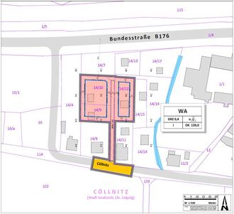 Der Geltungsbereich schließt folgenden Flurstücke der Gemarkung Cöllnitz ein: 14/9, 14/10 und 14/12 sowie 14/7 (teilweise) und 114 (teilweise).