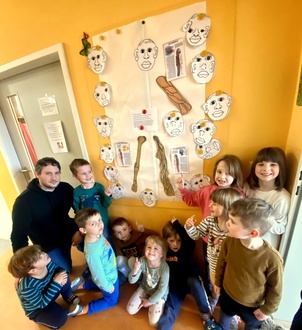 Aktuell befassen wir Kinder aus der Rosengruppe uns mit dem menschlichen Körper. Dabei lernen wir die verschiedensten Sachen. Zum Beispiel, dass unser Skelett uns stützt und uns nicht zusammenfallen lässt. Damit das funktioniert, haben wir eine ganze Menge Knochen. Wir Kinder sogar viel mehr als Erwachsene. Aber während wir mit der Zeit größer werden, wachsen einige Knochen zusammen, so dass wir schließlich „nur noch“ 206 Knochen besitzen. Wusstet ihr eigentlich, dass es eine Stelle von unserem Skelett gibt, die wir sogar sehen können? Unsere Zähne! Zum Körper gehört aber natürlich nicht nur das Skelett. Zum Bewegen brauchen wir unsere Muskeln. Davon haben wir auch ganz viele die alle zusammen arbeiten müssen. Um einen einzigen Schritt machen zu können müssen sich über 200 Muskeln bewegen. Aber wodurch wissen die Muskeln denn, dass sie sich bewegen müssen? Und wozu brauchen wir das Blut in unserem Körper? Diese Fragen und noch viele weitere werden in der kommenden Zeit noch beantwortet!