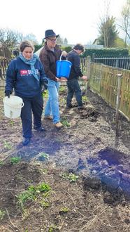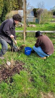 Am 13. April trafen wir uns zu einem kleinen Arbeitseinsatz im Schmetterlingsgarten. Wir, das sind die Heimatfreunde, die Winzer, die Nabu-Mitglieder und die Fabelwerkstatt. Im Schmetterlingsgarten pflanzten wir die ältesten Nutz- und Zierpflanzen, die wir im Gartenhandel finden konnten, z. B. Hönings Früheste, eine alte Stachelbeeren-Sorte. Die Stachelbeeren, die zu Wiprechts Zeiten angebaut wurden, sind leider alle zugunsten von Pflanzen verdrängt worden, die nicht so Mehltau anfällig sind. Des Weiteren pflanzten wir einen Speierling, ein alter Obstbaum, der bei uns fast vollständig vergessen wurde, da er nicht zu den gängigen Marktfrüchten gehört.