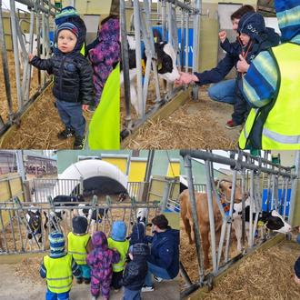 Mit großen Augen bestaunten unsere Kinder die Jungtiere und mit noch größeren Augen die ausgewachsenen Kühe. Wie aufregend! Dabei konnten wir sehen, wie die Kälber „Mittagsschlaf“ hielten, neugierig und durstig waren – genau wie wir! Ganz mutige Kinder durften die Tiere sogar streicheln! Auch die Kälber sowie Kühe waren sehr interessiert an uns und haben uns vor lauter Neugier angeleckt.