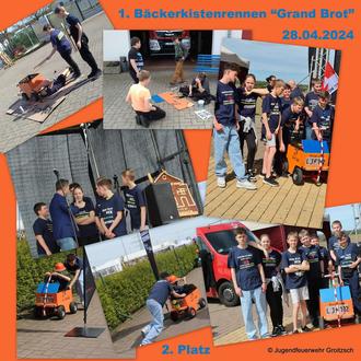 Unsere Jugendfeuerwehr bastelte an mehreren Samstagen an ihrem Bäckerkistenrennwagen, um damit am 28.04.2024 zum Backhaus-Fest in Zwenkau teilnehmen zu können.