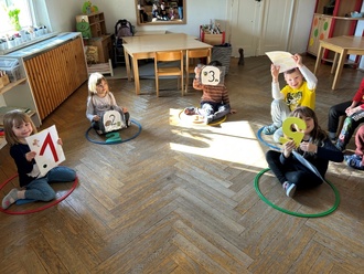 Da uns die Zahlen schon lange interessieren, haben wir uns nun auf eine Entdeckungstour ins Zahlenland gemacht. Mit einer passenden musikalischen Einstimmung ging es los. Gleich zu Beginn trafen wir auf die fünf Zahlenstädte. Dort hatten die Häuser die jeweilig passende Hausnummer. Zufälligerweise war an diesem Tag auch der Osterhase zu Besuch. Er verteilte die entsprechende Menge an Ostereiern in den jeweiligen Städten. Was waren die Bewohner glücklich über diese Geschenke! Doch plötzlich trieb der Zahlenteufel sein Unheil, denn er brachte alles in den Städten durcheinander. Nun waren die Bewohner mächtig traurig darüber. Zum Glück gab es aber den Hausmeister, der alles wieder in die richtige Ordnung brachte, sodass alle wieder glücklich waren. Nach diesem Wirrwarr begaben wir uns auf den Zahlenweg. Diesen mussten wir zunächst sortieren. Die Zahlen 1 bis 10 wurden von uns aneinandergereiht. Jedes Kind bekam anschließend eine Aufgabe gestellt, die es mit Hilfe des Zahlenweges lösen konnte. Am nächsten Tag haben wir uns dann das Zahlenland „Eins“ genauer angeschaut. Doch so einfach durften wir nicht eintreten, denn die Zahlenwächter versperrten den Weg. Sie ließen jedes Kind letztendlich nur mit einem Gegenstand herein, der die Menge „Eins“ symbolisiert. Im Zahlenland angekommen, amüsierten wir uns dann zu einer passenden Geschichte sowie schrieben und legten wir die Zahl 1. Bald besuchen wir dann auch schon die nächsten Zahlen!