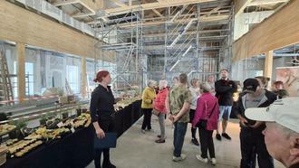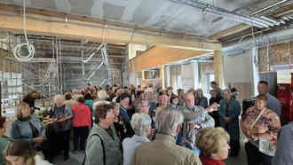 Anlässlich des bundesweiten Tages der Städtebauförderung öffnete am 10. Mai auch unsere Volkshausbaustelle ihre Türen für das interessierte Publikum. Und dieses kam reichlich. Organisiert von der Stadtverwaltung und der EventFactory Groitzsch konnten sich die zahlreichen Besucher einen Überblick über den Baufortschritt verschaffen. Informationen aus erster Hand gab es dabei während zweier Führungen durch Bauamtsleiter Dirk Schmidt. Nachdem die Stadt Groitzsch das Gebäude im Jahr 2016 erworben hatte, begannen 2018 mit der Entkernung und dem Teilabriss die ersten Arbeiten für das künftige Veranstaltungsobjekt. 60 Prozent des Altbaues mussten jedoch für die Einhaltung der Förderrichtlinien erhalten bleiben. Nun befinden sich die Handwerker beim Innenausbau und der Gestaltung der Außenanlagen fast auf der Zielgeraden mit einem geplanten Eröffnungstermin am 15. Januar 2026. Viele der Gäste waren vor allem beim Innenanblick erstaunt über den Umfang der Arbeiten. Auch für den kleinen Hunger und Durst war gesorgt. Unter anderem präsentierte das Unternehmen Saxonia-Catering Leipzig mit einem großen Buffet für alle ihre Leistungsfähigkeit und die Mitglieder des Groitzscher Carnevalclub sorgten mit ihren Auftritten für beste Unterhaltung, wenngleich noch vor dem neuen Volkshaus.